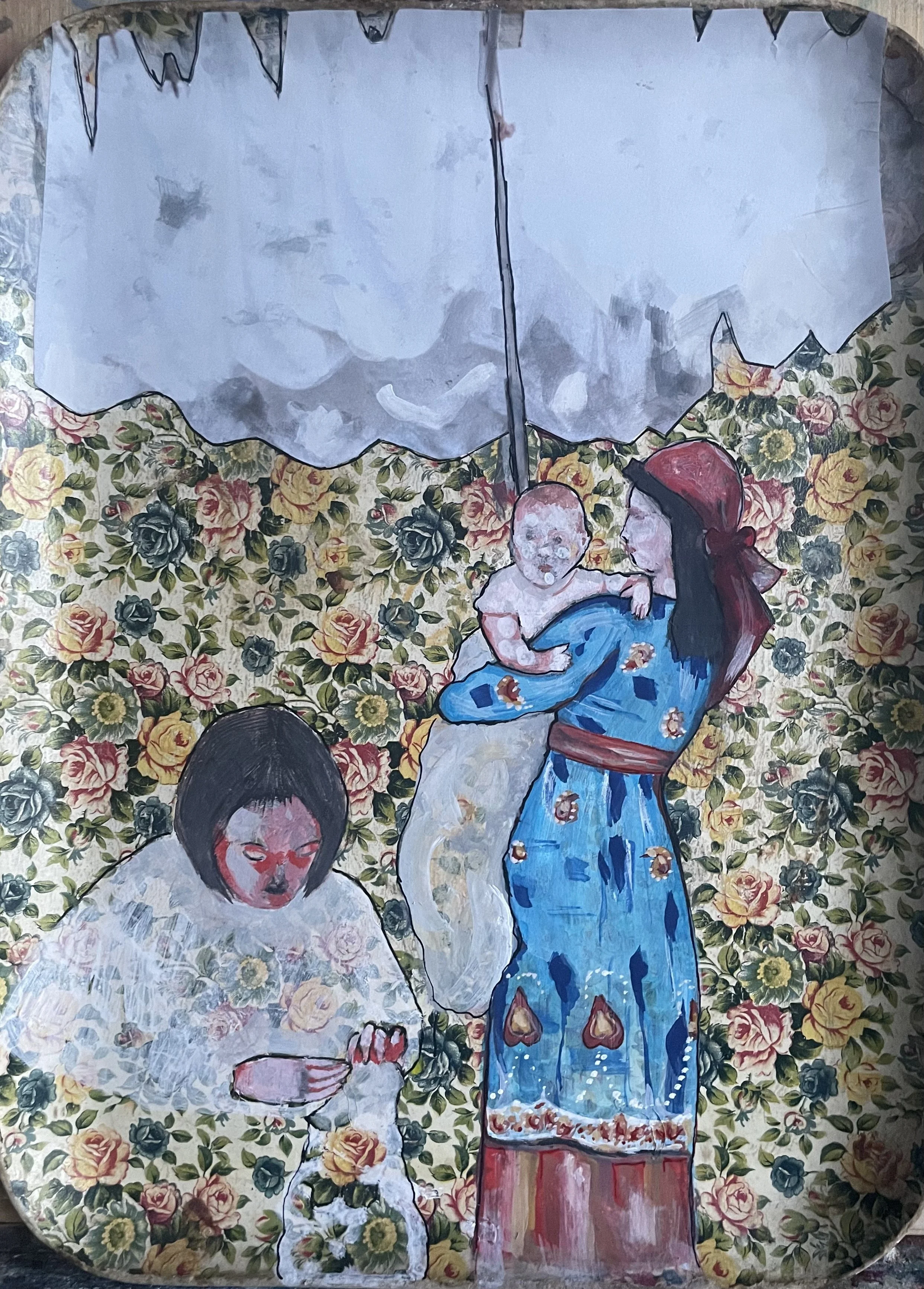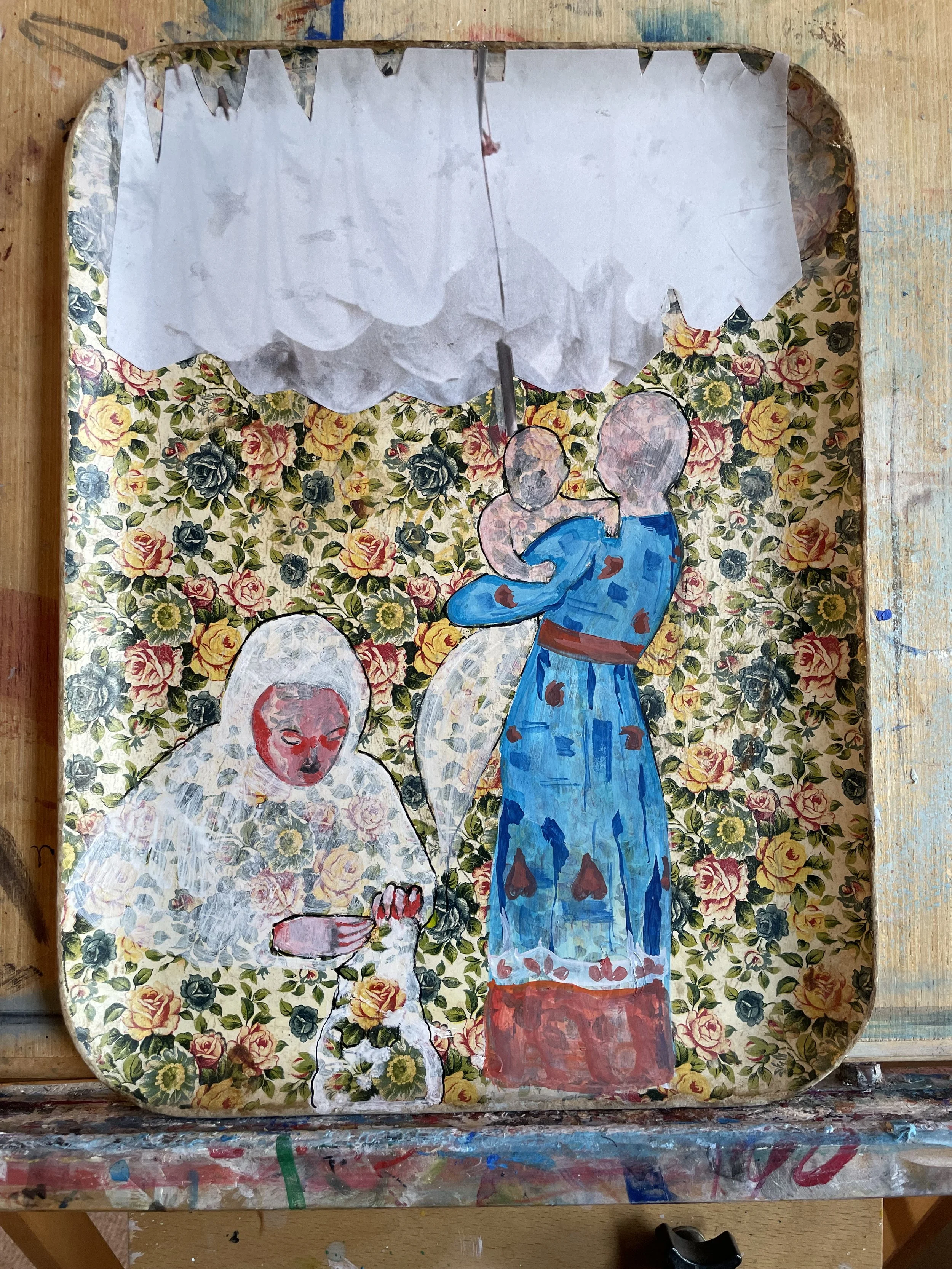 Painting and collaging an original vintage tray that belonged to my mother in law